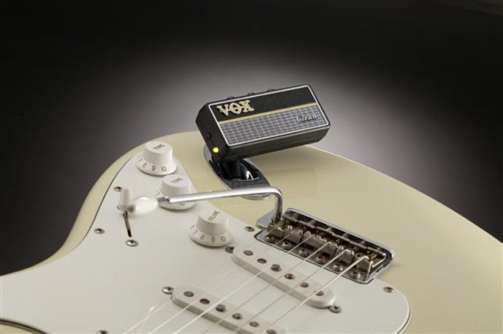 A perfect way to practice quietly with your electric guitar, and yes, it even works for a Strat. Featuring a boutique clean sound gain, volume and tone controls and a button for chorus, reverb or delay you can even mix in your own audio with the 1/8" aux jack.