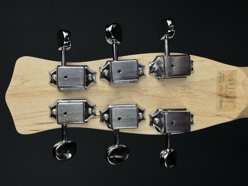 This electric guitar boasts a heaping portion of Retro-Cool-Yet-Futuristic charm in classic Danelectro style, and is decked out in a beautiful Maroon and Silver glitter finish, and sports Danelectro's iconic chiming, bright, amazing sounding lipstick pickups.