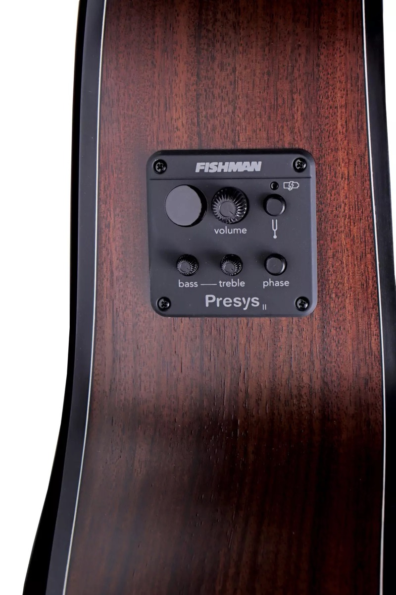 This represents a great value with professional features at an entry price point. This cutaway grand auditorium from Denver Guitars features a solid Spruce top, with Rosewood back and sides, Okoume neck and a Techwood fingerboard.