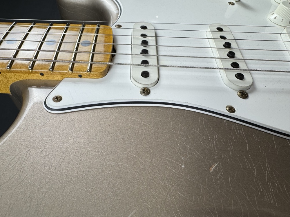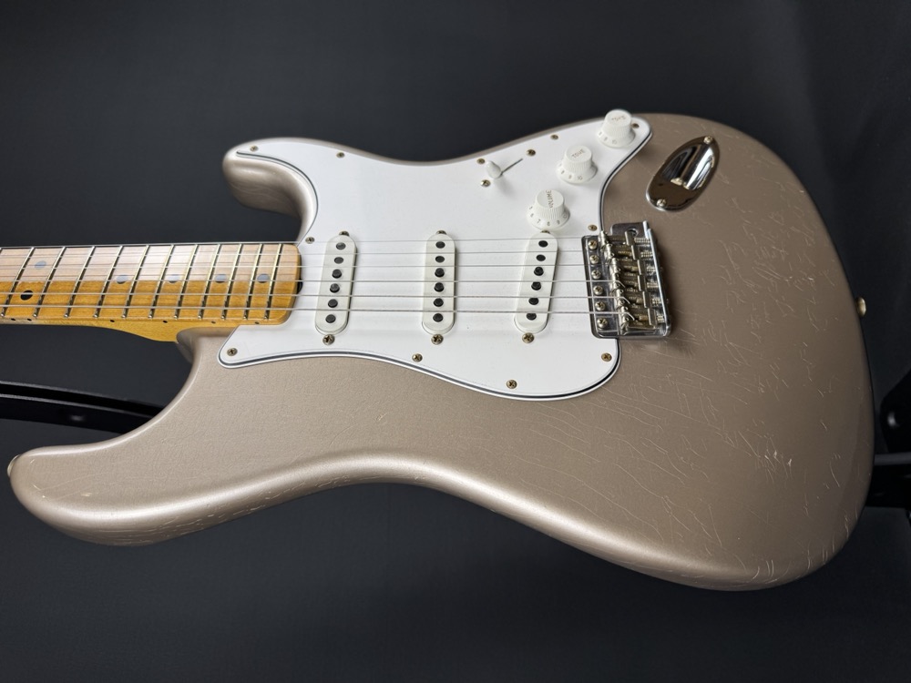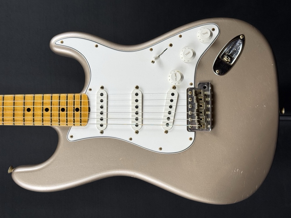 This Stratocaster represents the pinnacle in Stratdom! This phenomenal guitar was built by the immensly skilled hands of the Fender Custom Shop with premium materials, and ultimate care and attention to detail. This Strat is finished in a gorgeous Faded Shoreline Gold which has received a beautiful, true-to-vintage looking Journeyman Relic.
