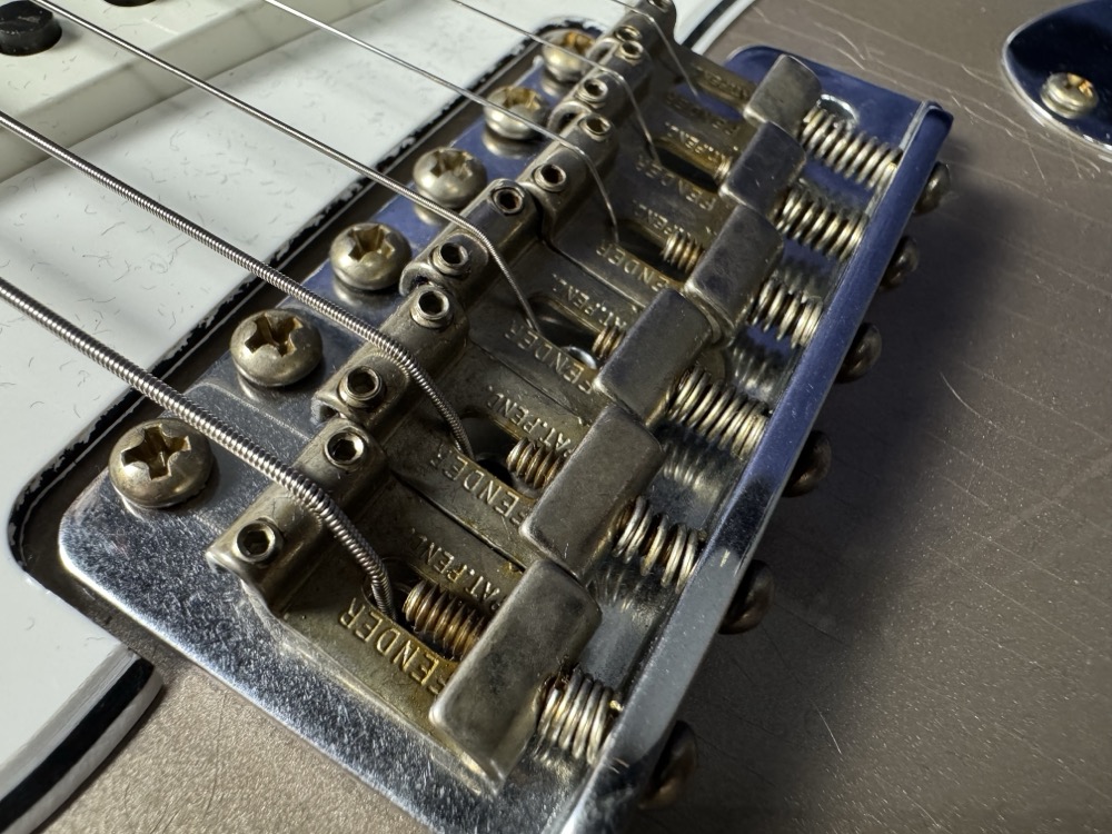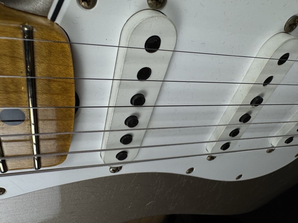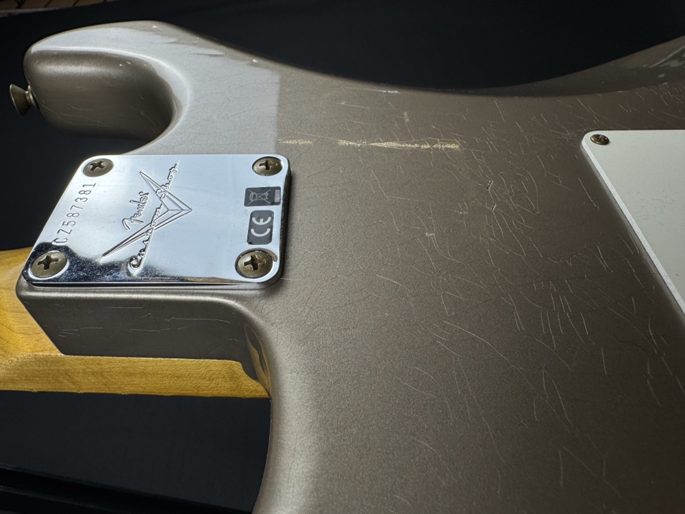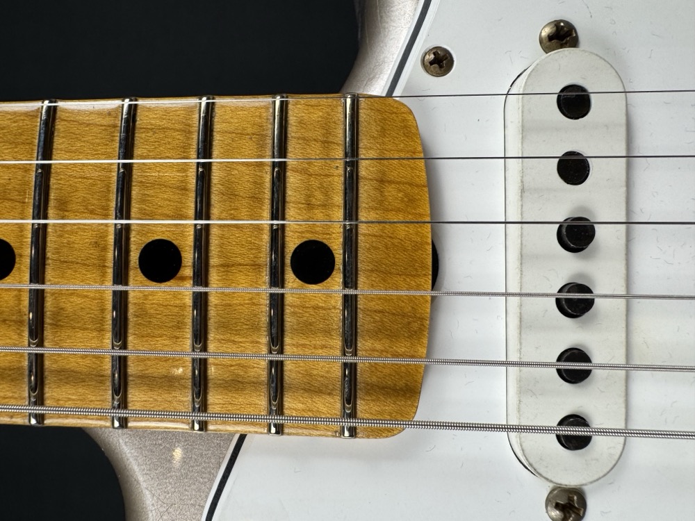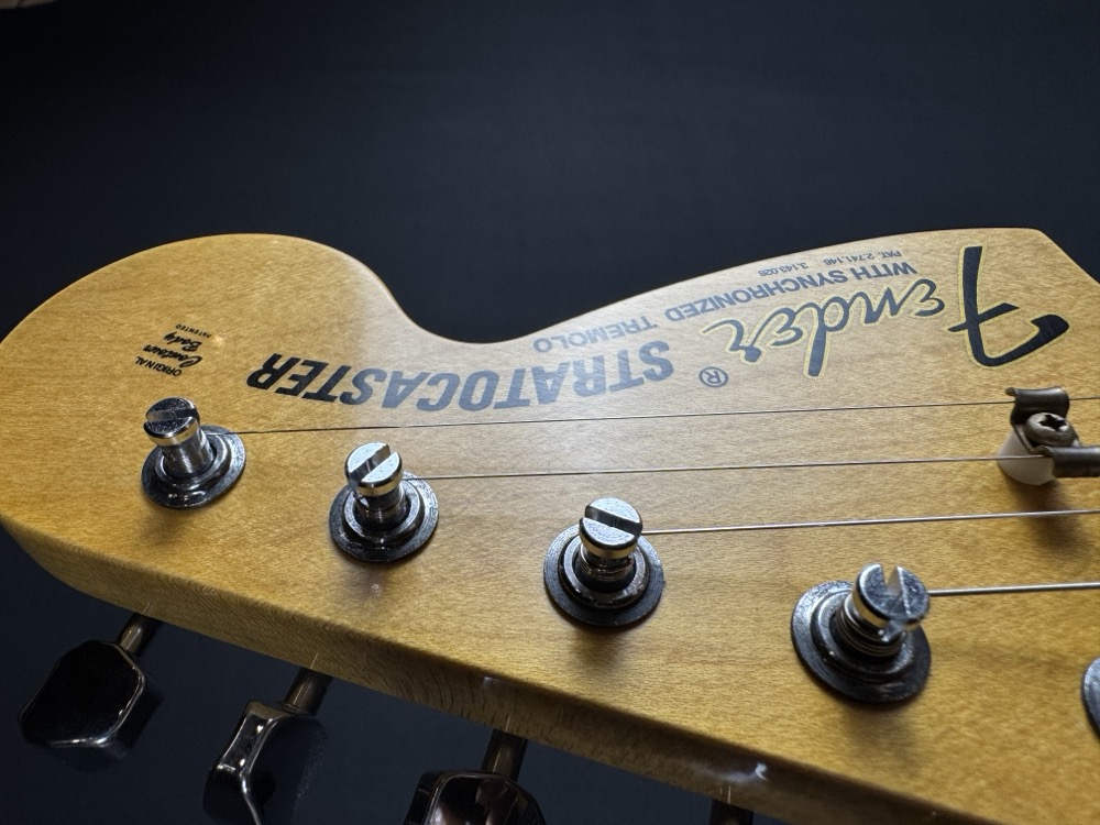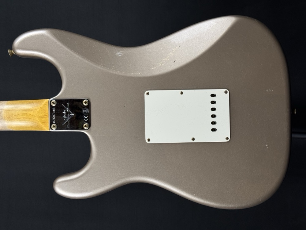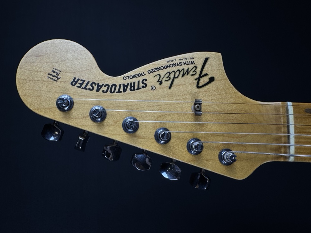 Other features include 9.5" (241 mm) Radius, Fat ’50s Strat Wiring with 1/2 Blender, 3-Ply Parchment Pickguard, Custom Shop Vintage Synchronized Tremolo, Vintage “F” Style Tuning Machines, Bone Nut, American Vintage '65 String Tree, Deluxe Hardshell Case, Strap, Certificate of Authenticity.