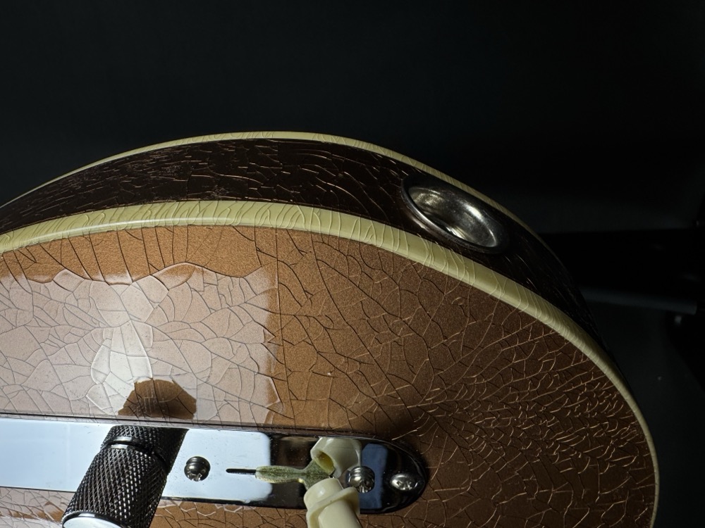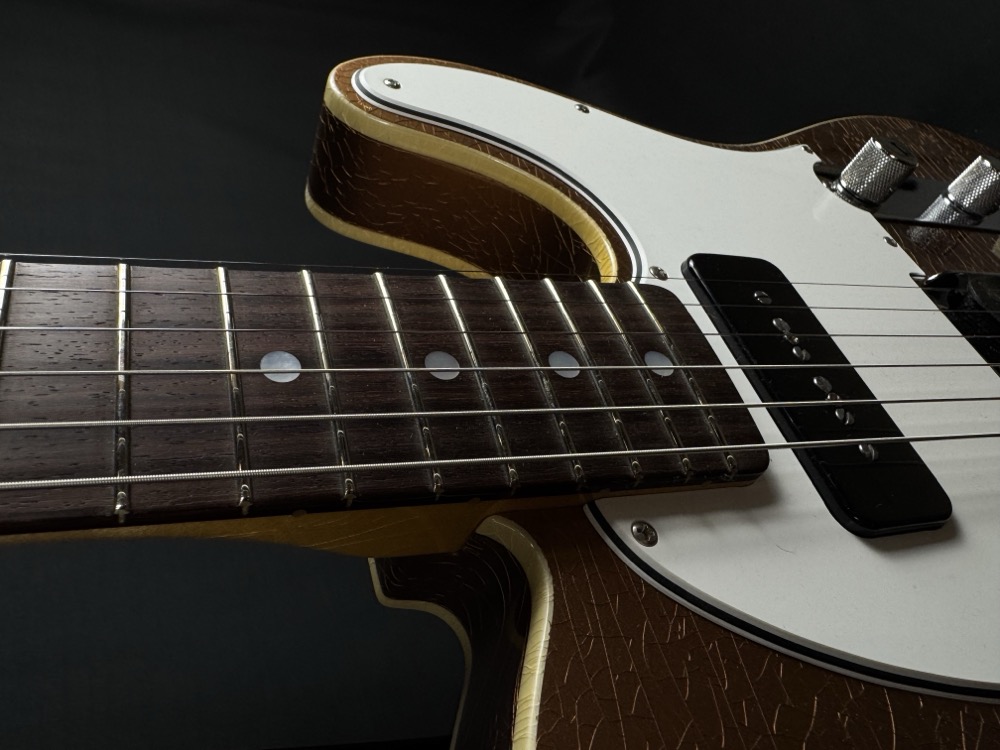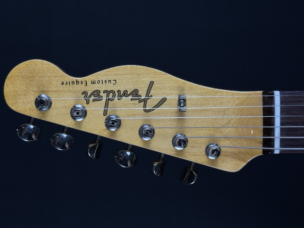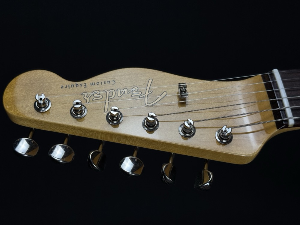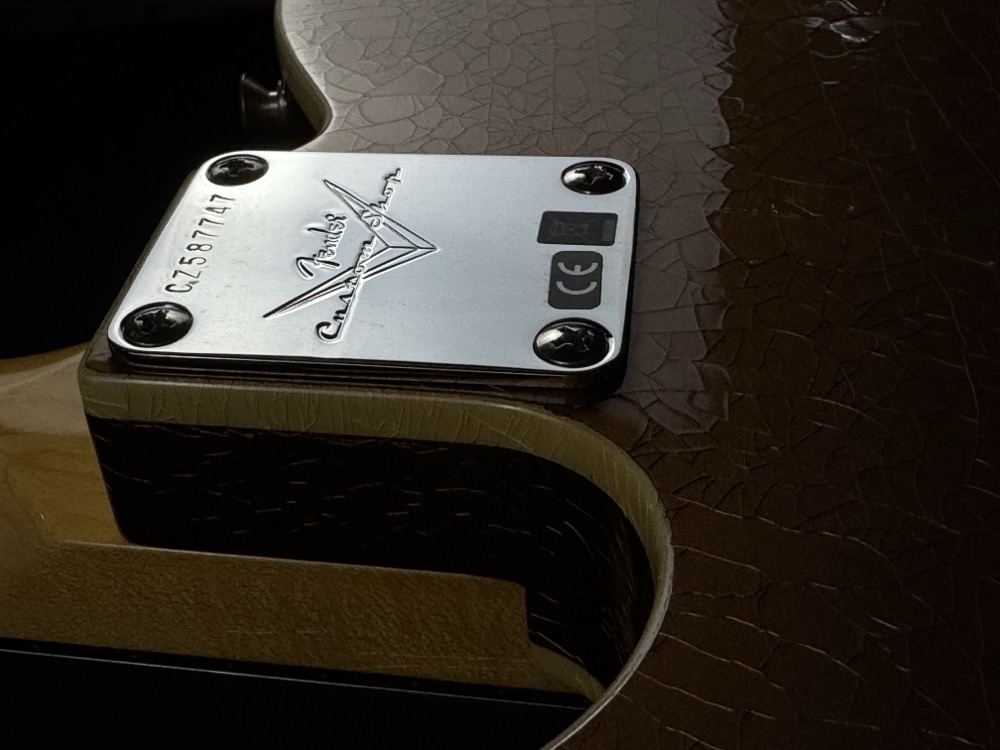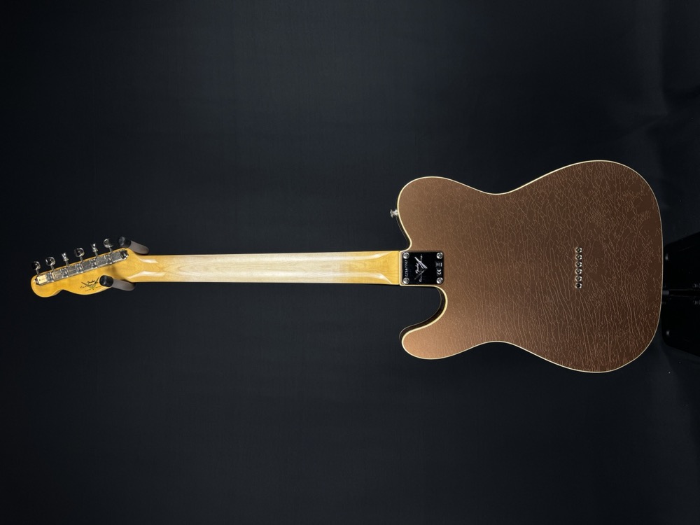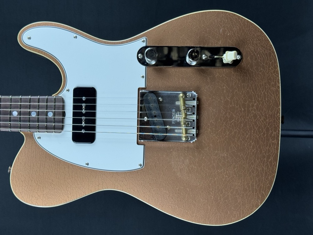 This guitar is a stunner! A Fender Custom Shop limited edition Double Custome Esquire with gorgeous aged Copper finish that features broken-mirror-like checking and spidering resulting in a mesmerising depth and dimension.