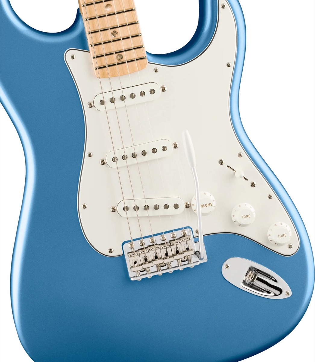 Legendary solo artist and Procol Harum guitarist Robin Trower helped define an era of guitar-riff rock with the first four notes of 1974's "Bridge of Sighs." Trower's signature Stratocaster guitar features custom pickups created by Trower and Fender master builder Todd Krause, with a reverse wound/reverse polarity middle pickup (including a humbucking option in the second and fourth positions). Other features include an alder body, custom C-shaped maple neck with abalone dot position inlays and narrow spacing, large '70s-style headstock with '70s-style decal, synchronized tremolo bridge, bullet truss rod adjustment nut and four-bolt neck plate.