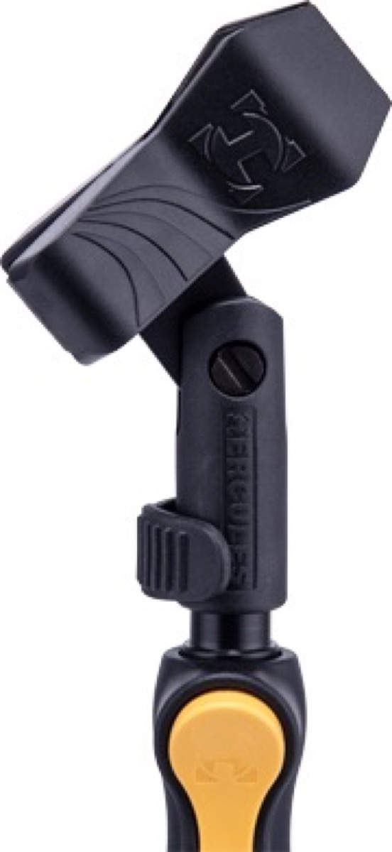 This Tripod Base Tabletop Microphone Stand features the EZ Grip Height Adjustment, allowing you to quickly adjust height with one hand. It also includes a tiltable base which allows the shaft to be angled for optimal mic placement and tripod swivel legs that adjust to fit around other equipment easily. The popular Hercules EZ microphone clip is also included. This stand is perfect for tabletop setups, kick drum live capture or recording, or any other low-profile applications.
