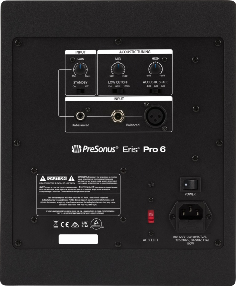 Acoustic tuning controls and a three-way Acoustic Space tuning lets you accurately configure the Eris Pro 6 for your room. Flexible input options enable connection to almost any line-level source, from mixers to audio interfaces and more. Provisions for wall and ceiling mounts make it easy to integrate Eris Pro 6 monitors into any stereo or multi-channel system.