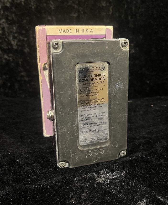 This Used pedal is in Very Good condition but, as with most DOD pedals from this era, is missing the battery door. The "Loud" pot has been changed and there's an extra washer installed causing it to sit proud of the others.