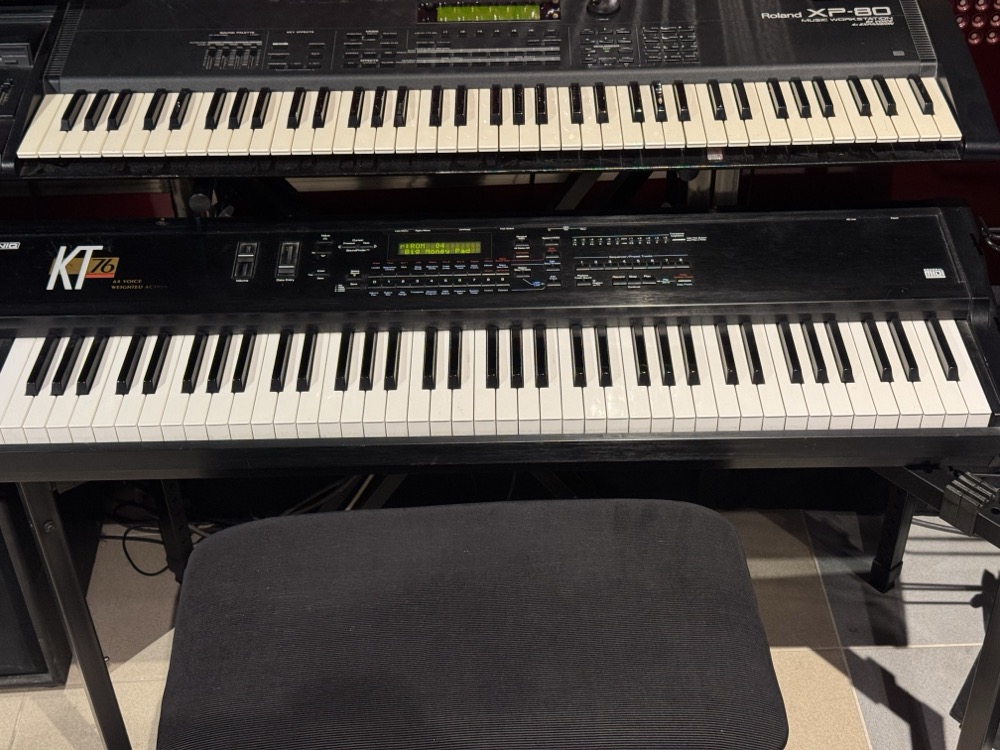 This is in good condition and has been serviced including replacement of the internal battery. This 76-key keyboard is a powerhouse for musicians seeking expressive control and versatility in their compositions. Known for its rich sound palette, the KT-76 features a unique blend of digital and sampled waveforms, allowing you to craft everything from lush strings to punchy bass lines with ease.
