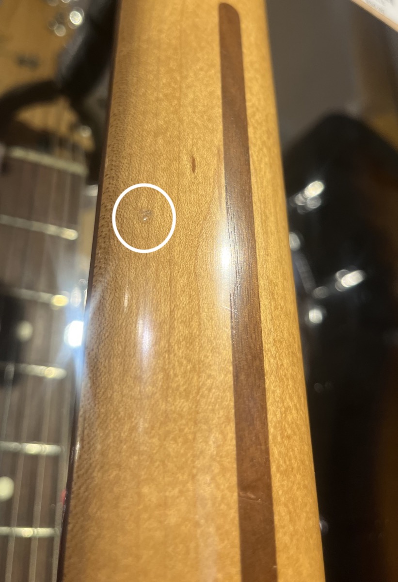 This Used guitar is in Excellent condition with little play wear. There's a small impression on the back of the neck, near the lower frets - as seen in the photo but does not effect playing.