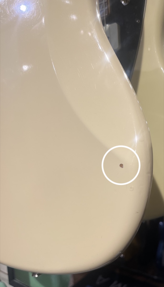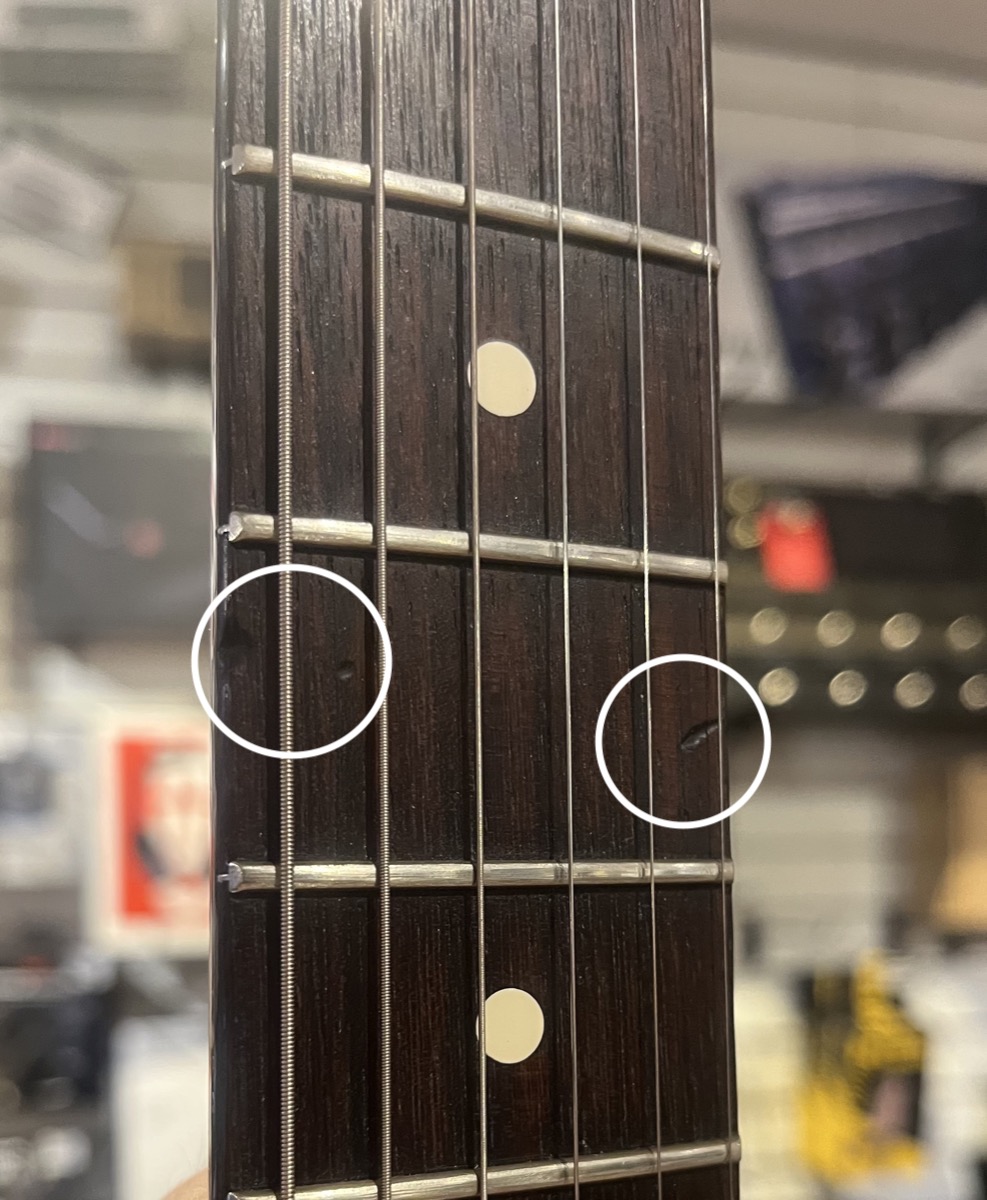 There's also 2 small impressions in the rosewood fretboard at the 6th fret - seen in the picture.