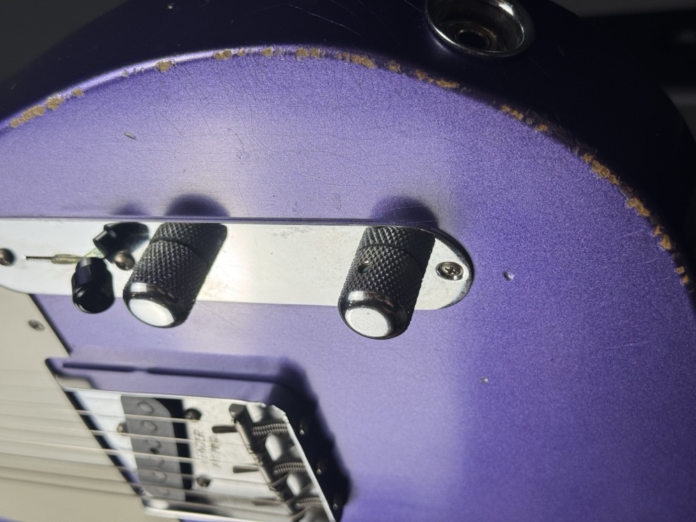 This is a great little Telecaster - eye catching finish and something you don't see too often. Royalty! Purple is Royalty!