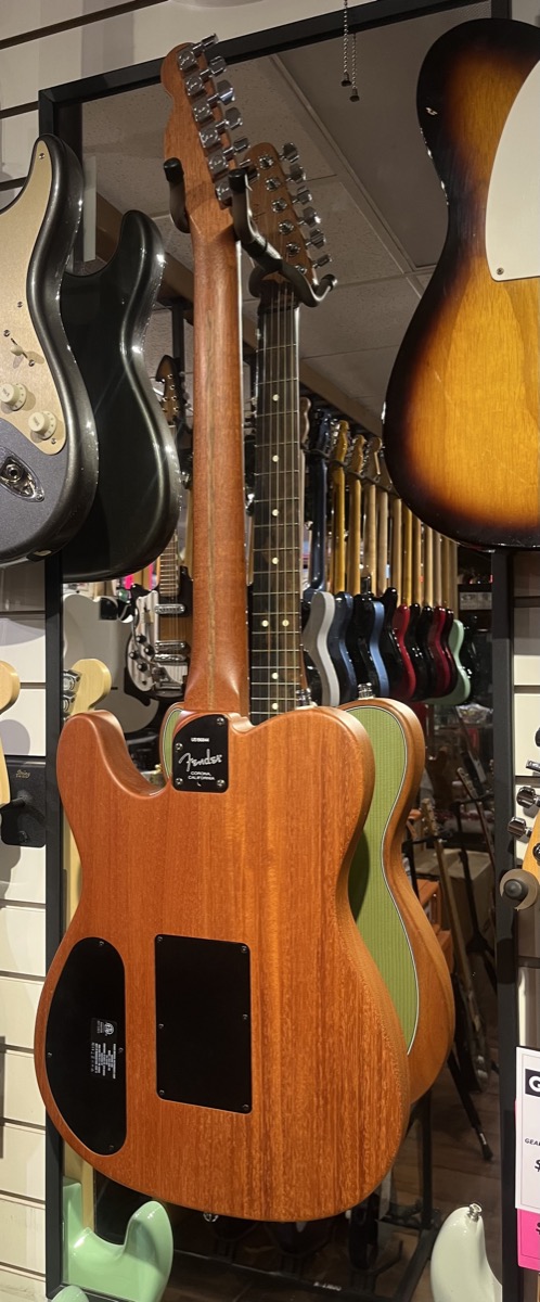 "Unique to the Acoustasonic Tele is its mini-soundhole mahogany body with SIRS resonance enhancement system. Paired with its transverse-braced Lutz spruce top, the Acoustasonic resonates like no Tele you’ve played before, with punchy bass and a sparkly top end that comes across loud and clear through the onboard Fishman electronics."
