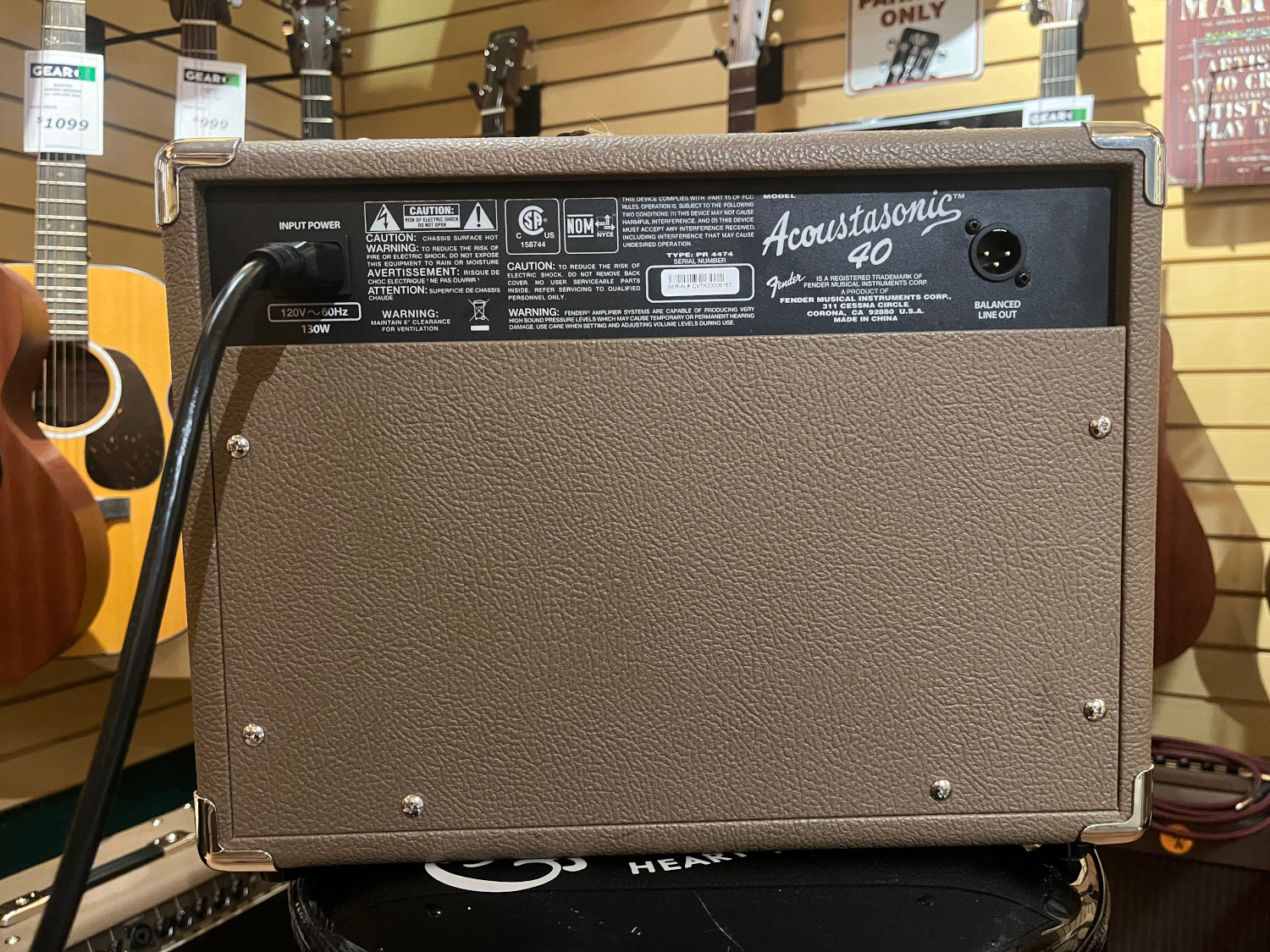 2 Channel 40 Watt Acoustic amplifier featuring 2 6.5" Speakers, 3 Band EQ, XLR Combo Jack inputs, XLR output and reverb in Excellent condition.