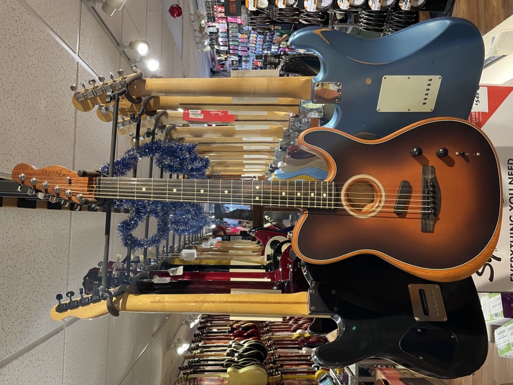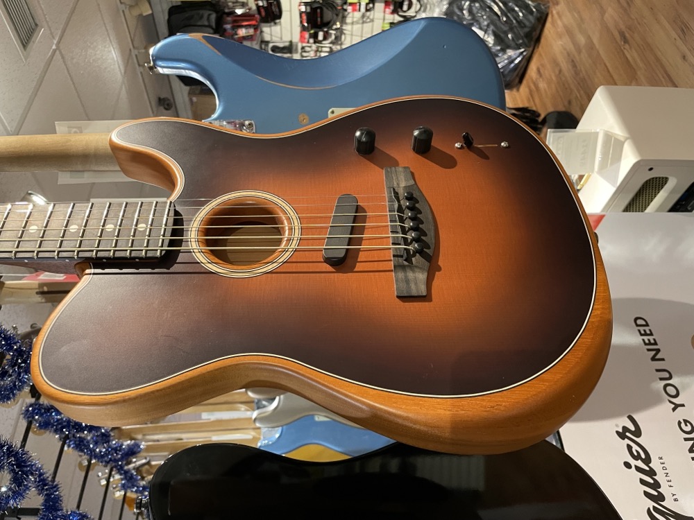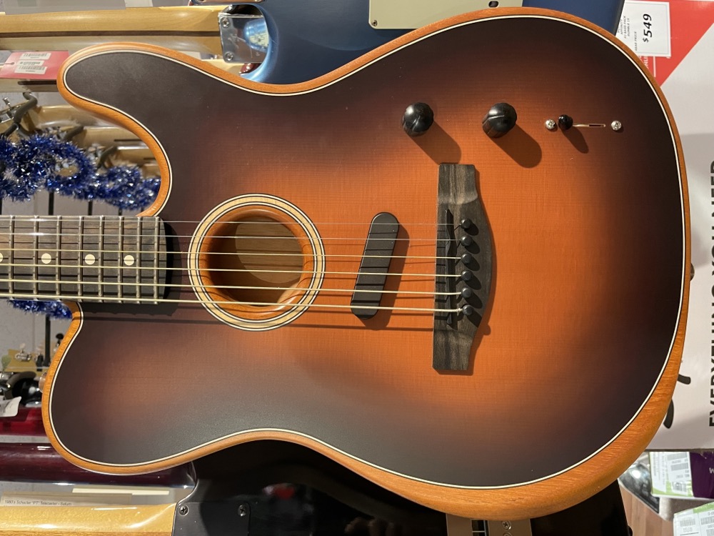 This is in excellent condition and comes with all of the goodies that come with it including the hang tags. There are some small marks on the bottom back edge of the guitar, but no-one will be seeing those. This is a great guitar if you're in a cover band and need to cover a large range of acoustic and electric tones. Comes with the original deluxe gig bag.