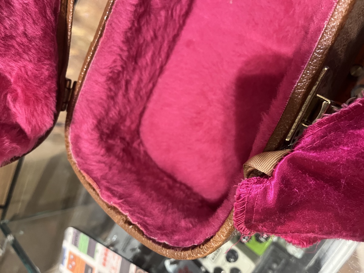 This Used case is in Godd+ condition. All latches work, pink Shroud is not ripped or anything. Some wearing on the inside of the case where the strap button rubs, at bottom of guitar body.