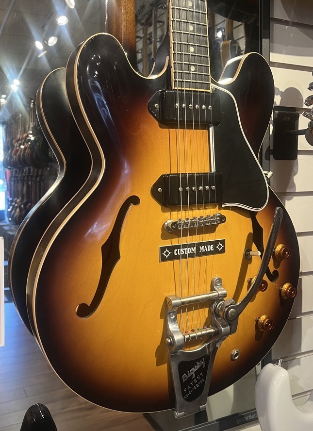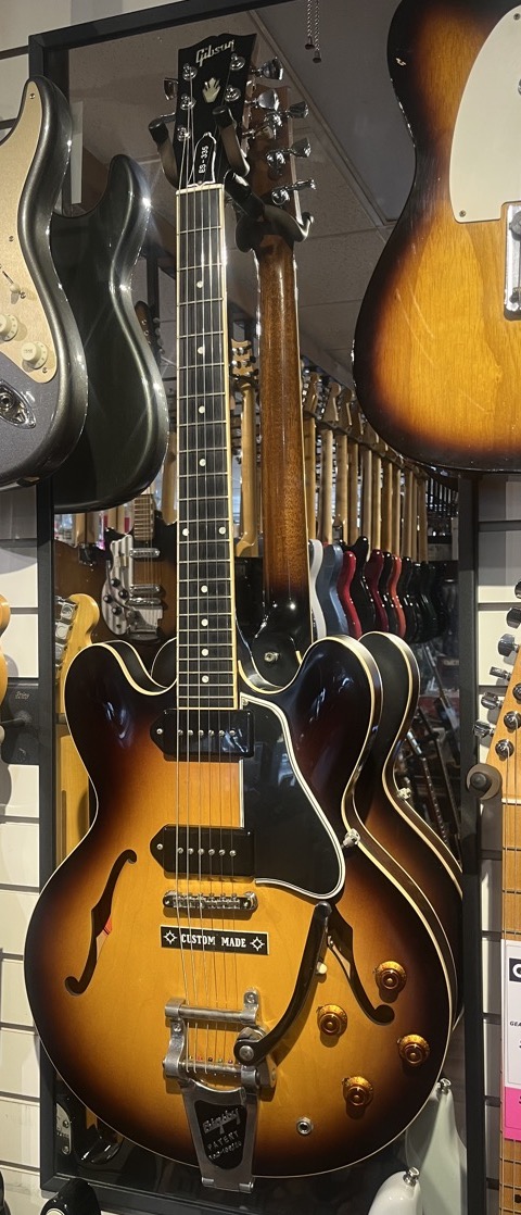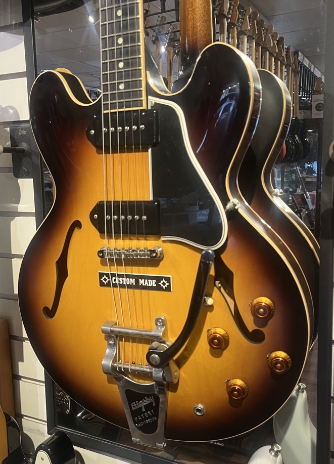 6 String Semi Hollow Electric Guitar featuring a Gloss Top, Maple body, Mahogany neck, 2 P90 Pickups and Bigsby with Original Hard Shell Case.