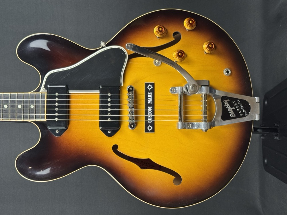 6 String Semi Hollow Electric Guitar featuring a Gloss Top, Maple body, Mahogany neck, 2 P90 Pickups and Bigsby with Original Hard Shell Case.