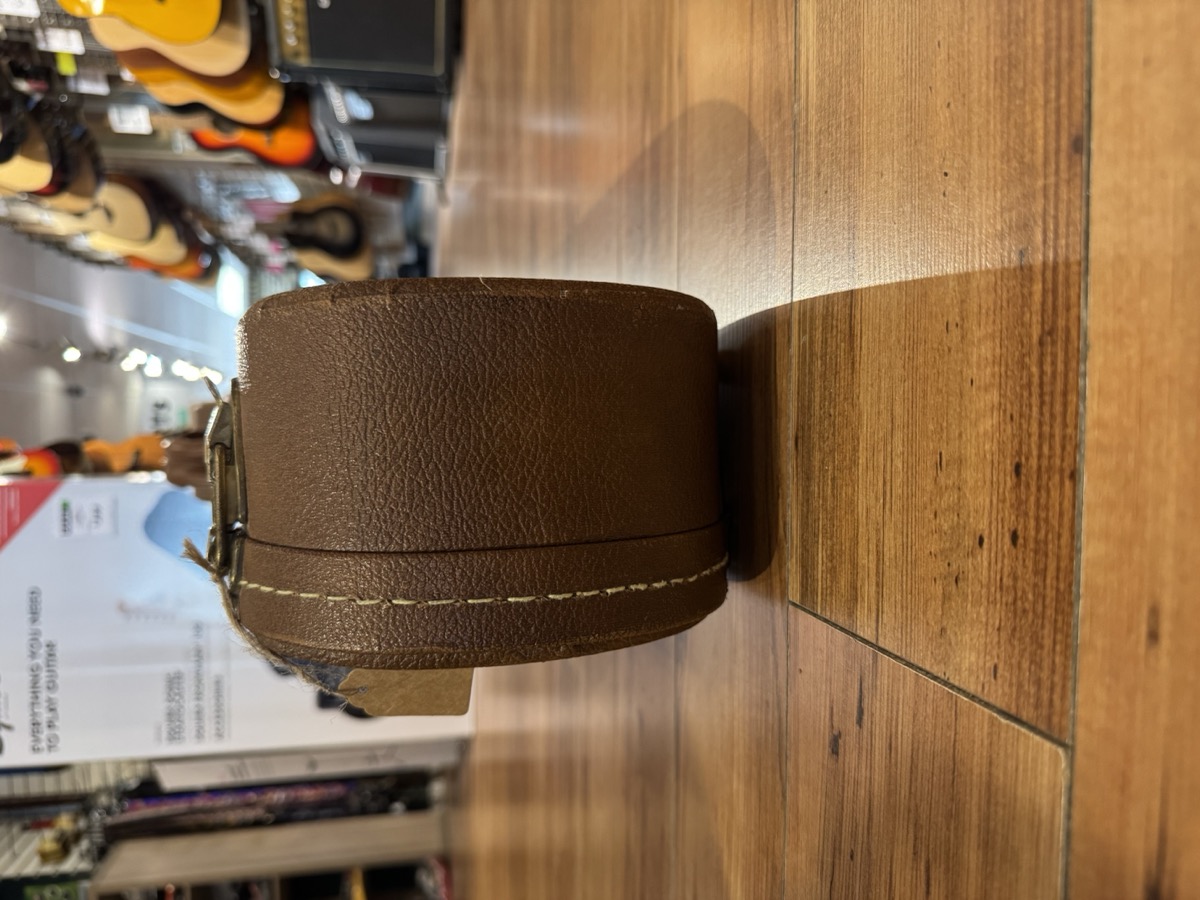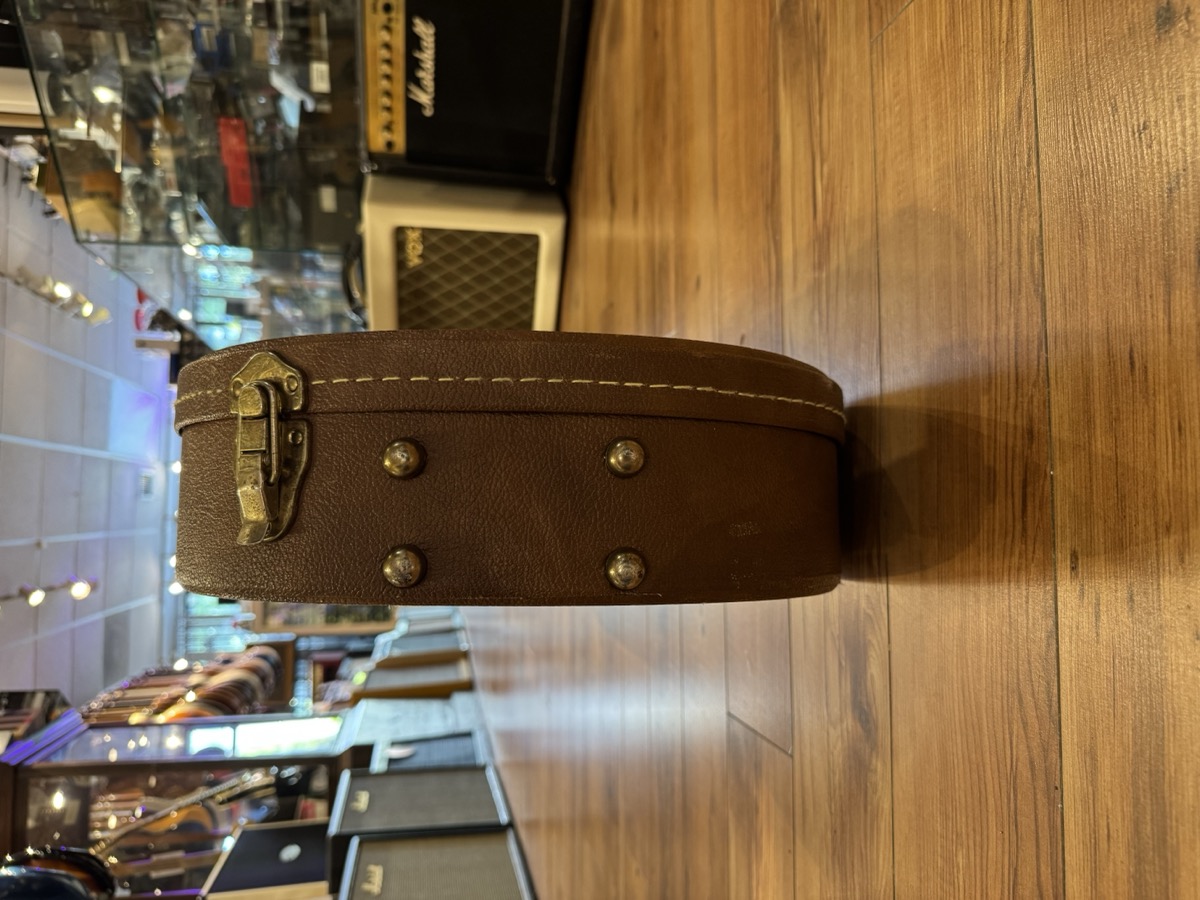 Featuring a classic brown exterior tolex and red fuzzy goodness inside along with the red satin interior cover.