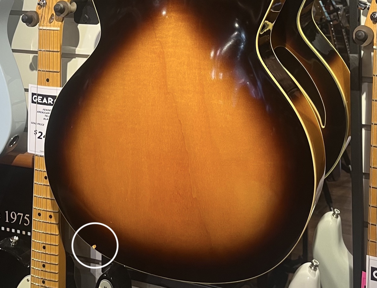 This Used guitar is in Very Good++ Condition with some light play wear - most notable is a ding in the lacquer on the back/bottom edge of the body - as seen in the picture.
