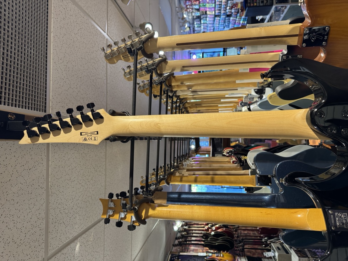 This is in very good condition with some oxidation of the knobs and some small dings. You're probably going to be agressively chugging on this and adding your own marks soon enough. This beast goes beyond a simple black finish that's so common in entry-level 7 strings. Ibanez Infinity pickups deliver an accurate and tight sound with excellent dynamics. Even under heavy settings, they do not lose tonal clarity.