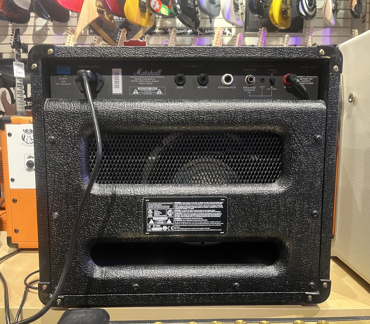 Single 10" Special Designed Celestion "10" Speaker, effects loop and "Softube" speaker emulated out / headphone out.
