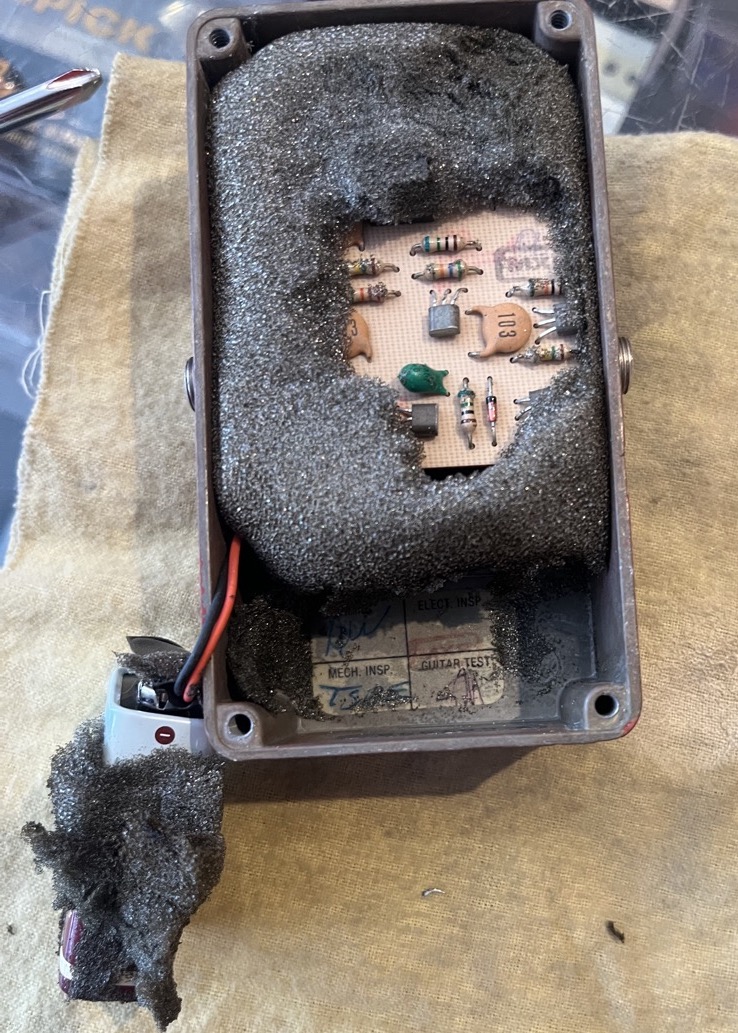 Typical of these Vintage MXR pedals, the soft foam inside, has started to disintegrate.
