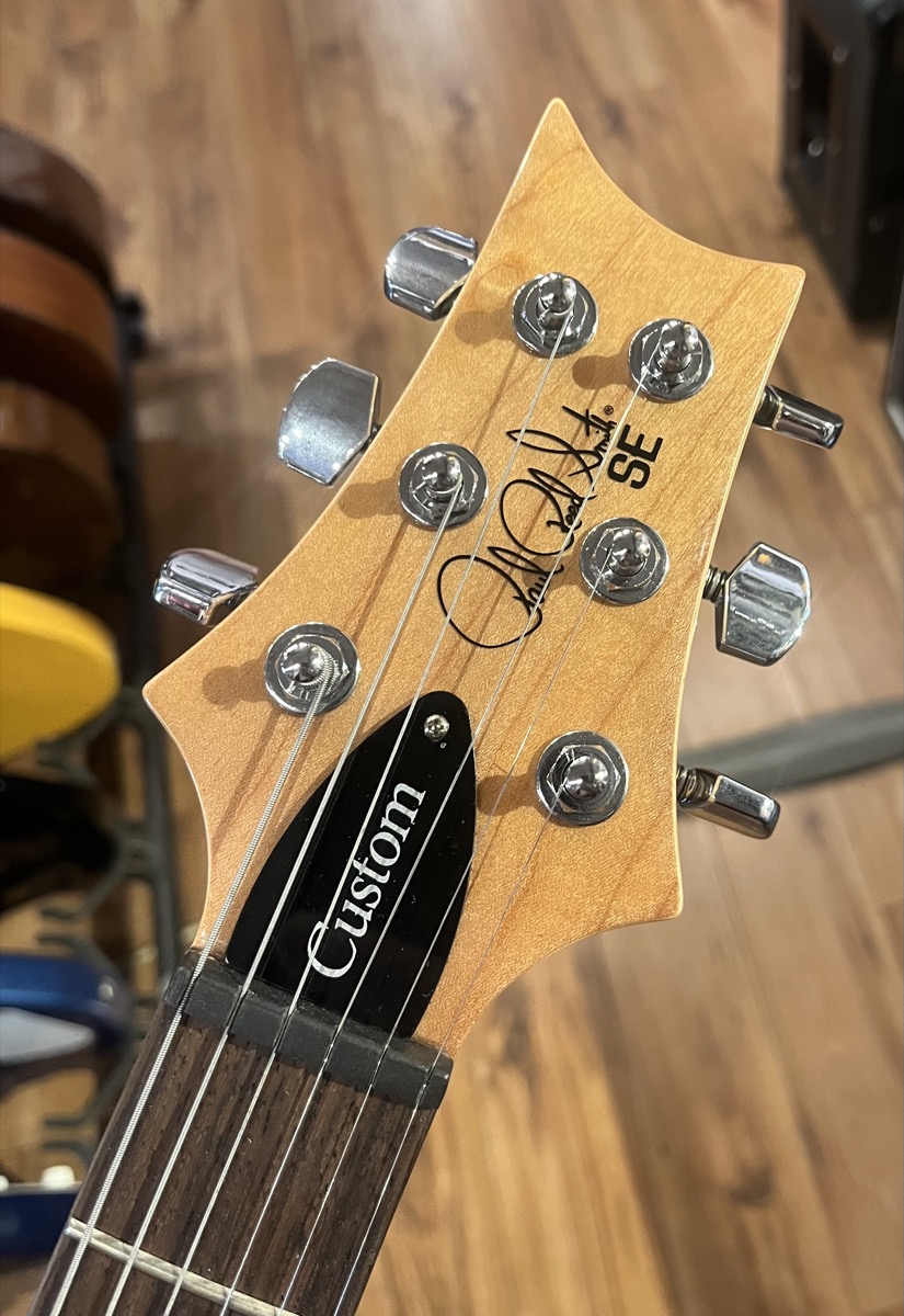 "The Paul Reed Smith SE Custom 24 solidbody electric guitar puts the sound, playability, and gorgeous looks of the Custom line into a more affordable instrument. The SE Custom 24's mahogany body and maple top now feature a more traditional "violin" body carve that gives it the feel of top-level Custom 24 guitars. A pair of 85/15 "S" pickups delivers a wealth of superb humbucking or single-coil tones. Its maple neck features a Wide Thin shape for comfortably fast playability, and the rosewood fretboard is adorned with old-school Birds inlays for that iconic PRS look. This guitar is a true PRS through and through, as well as being a great value — you don't have to be a touring rock star to enjoy the PRS SE Custom 24's exceptional tone and playability."