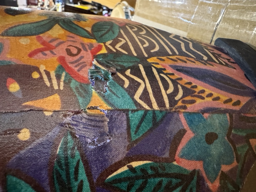 *This used drum has sustained a bit of damage (see pictures), and is priced accordingly. This drum really does sound excellent!