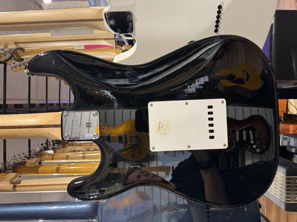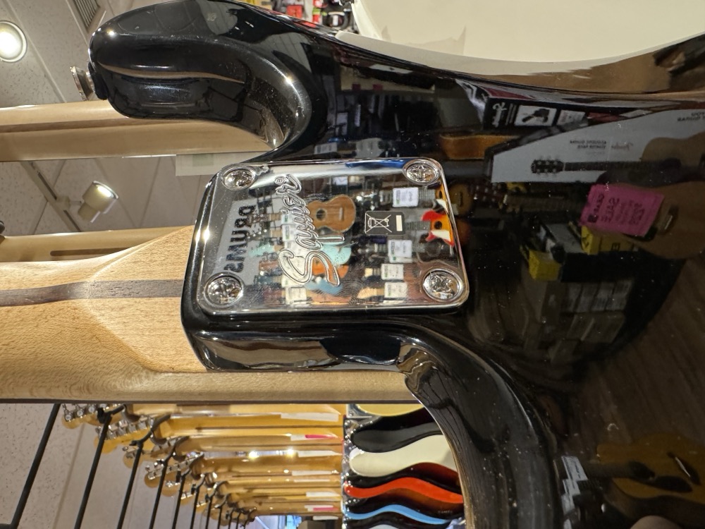 Black poplar body with 1 ply pickguard and chrome hardware.