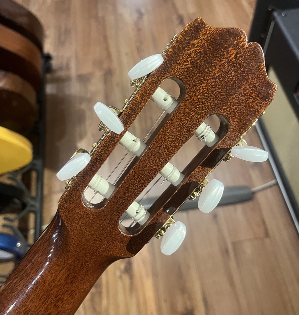 The EC-128 is a very well made, great sounding, more "traditional" looking classical with an active preamp. No cutaway body shape here.