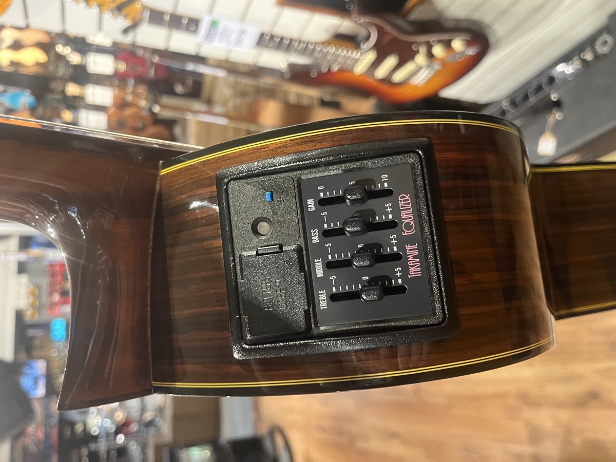 Bridge is Rosewood and the pickup features an under saddle pickup with an active preamp, 3 band EQ and Gain control.