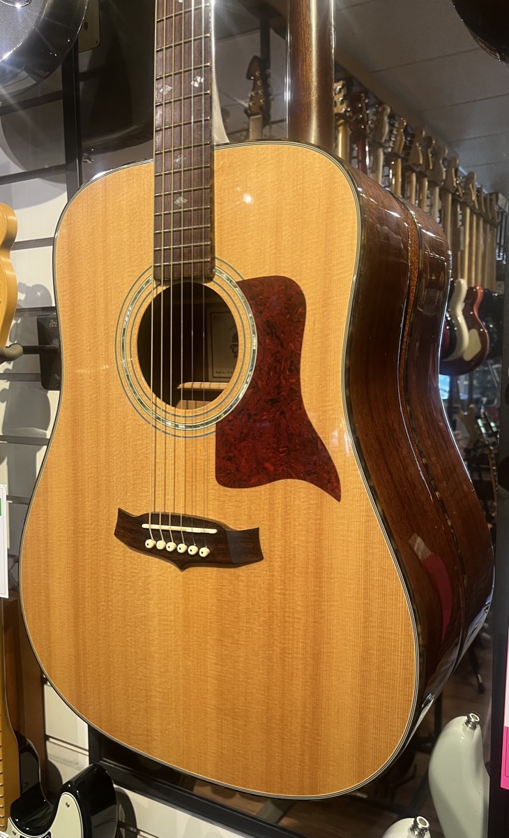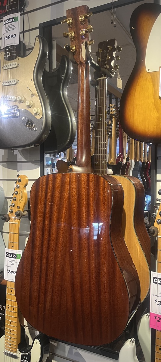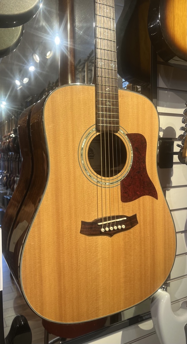 This TW-15 DLX Features A Solid Spruce Top and Mahogany Back and Sides (Solid) with a Gloss finish. Dreadnought body style.