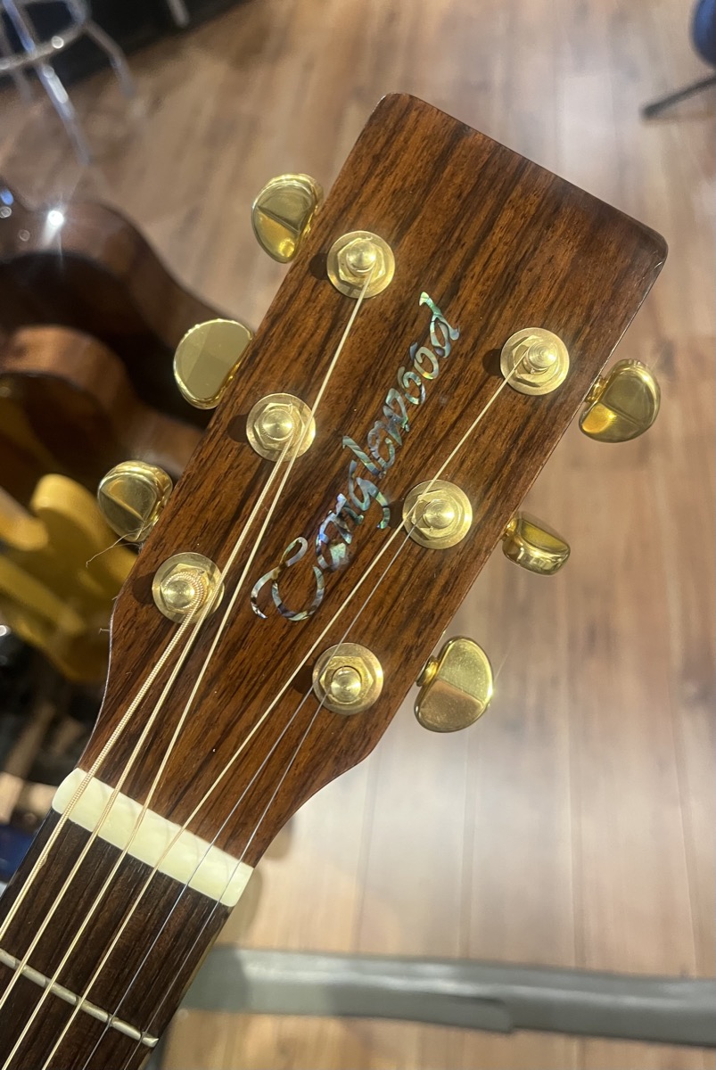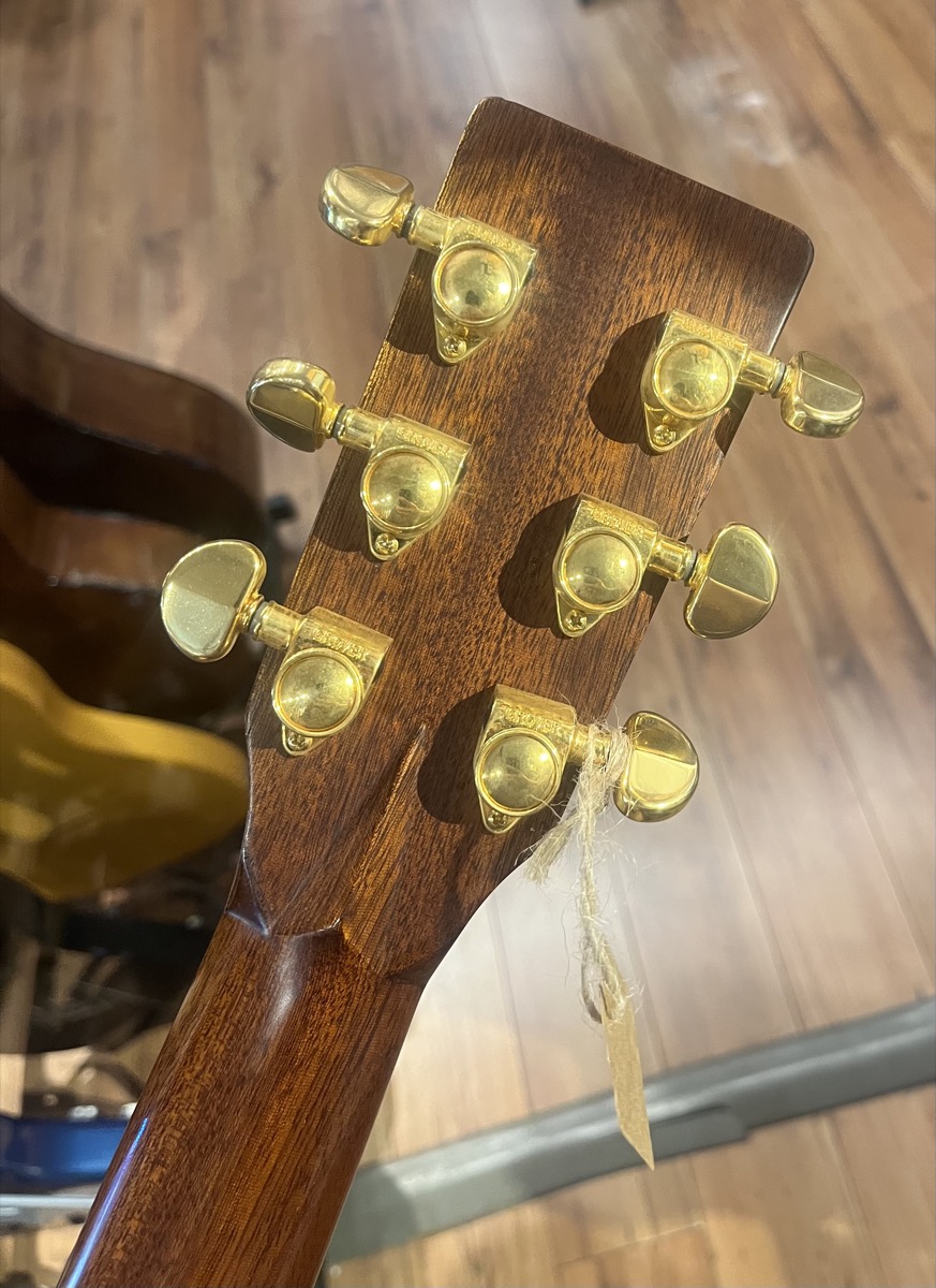 Other "Classy" bits and bobs... Gold Grover Machine Heads, Rosewood Bridge, Faux Tortoise binding on body and along neck, with a Tortoise cap on heel of neck, and mother of pearl inlay rosette around the sound hole.