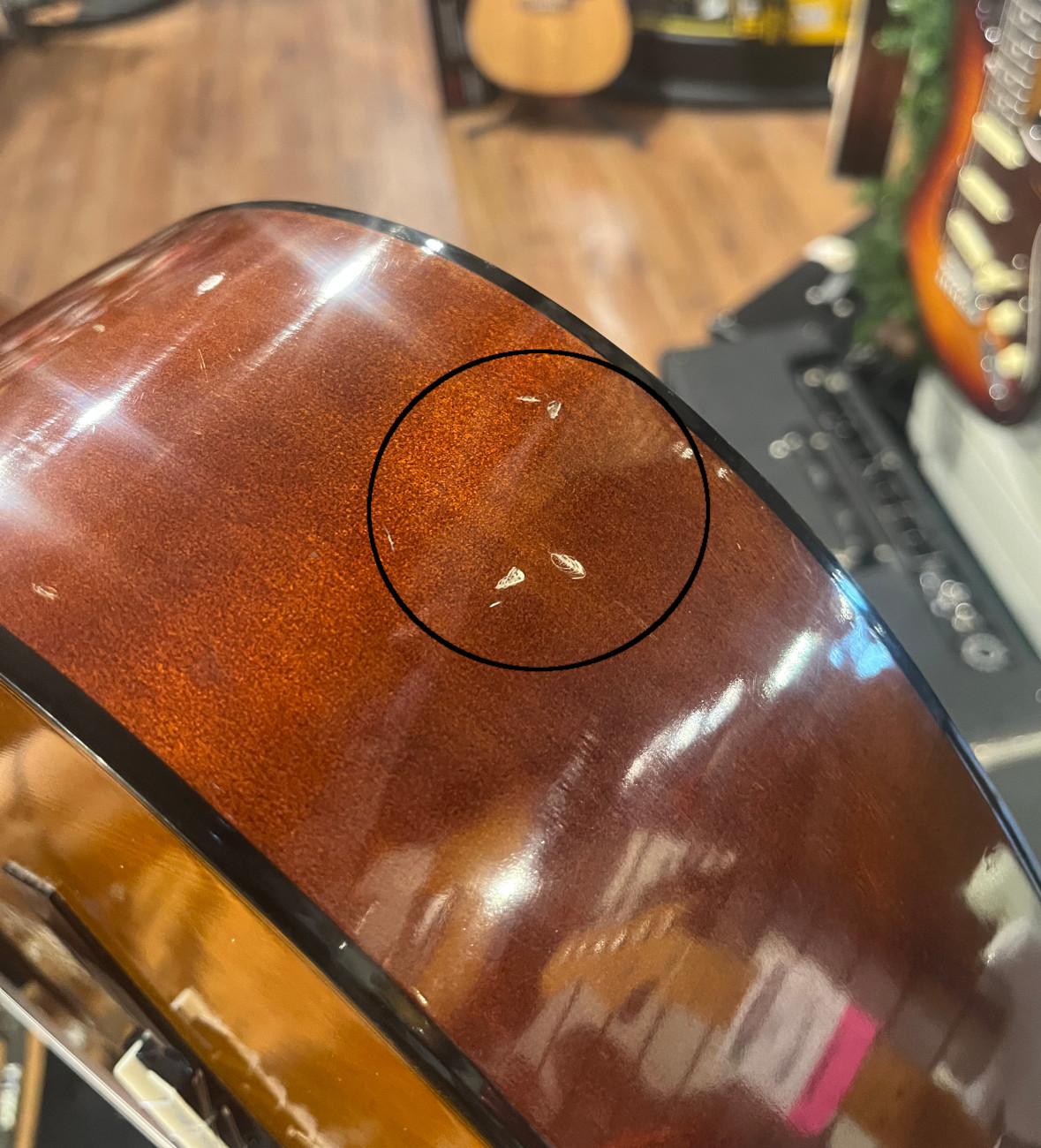 This Used guitar is in Very Good+ condition with minimal play wear and a couple of small dings along the bottom side, seen in picture, and some minimal wear on the back of the body.